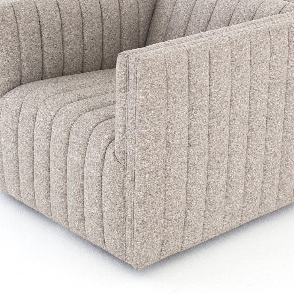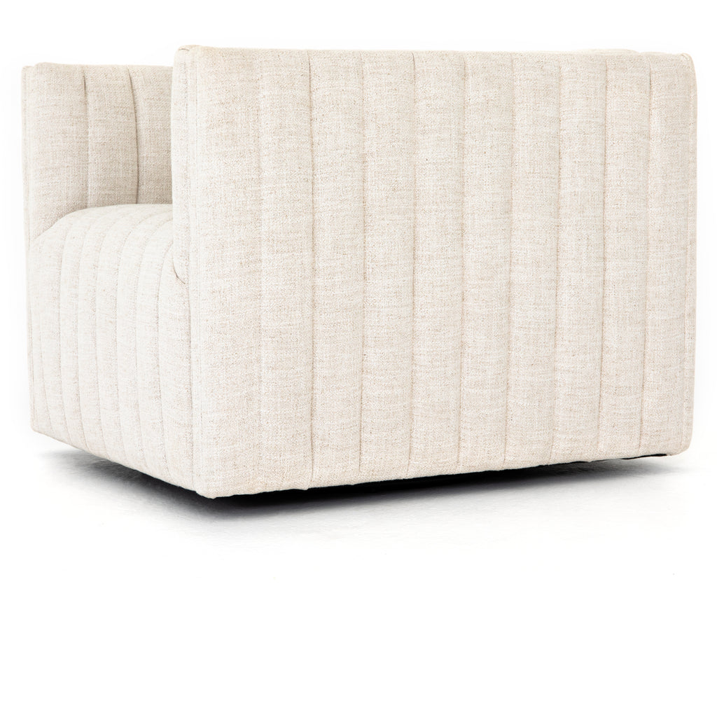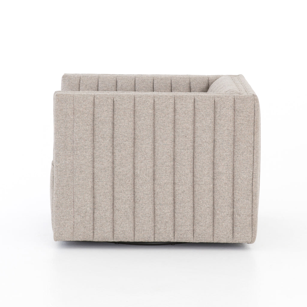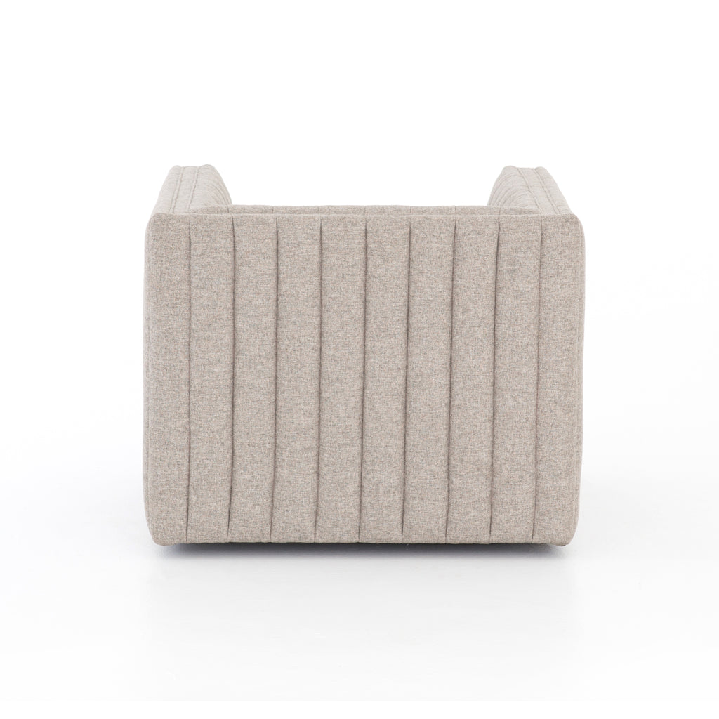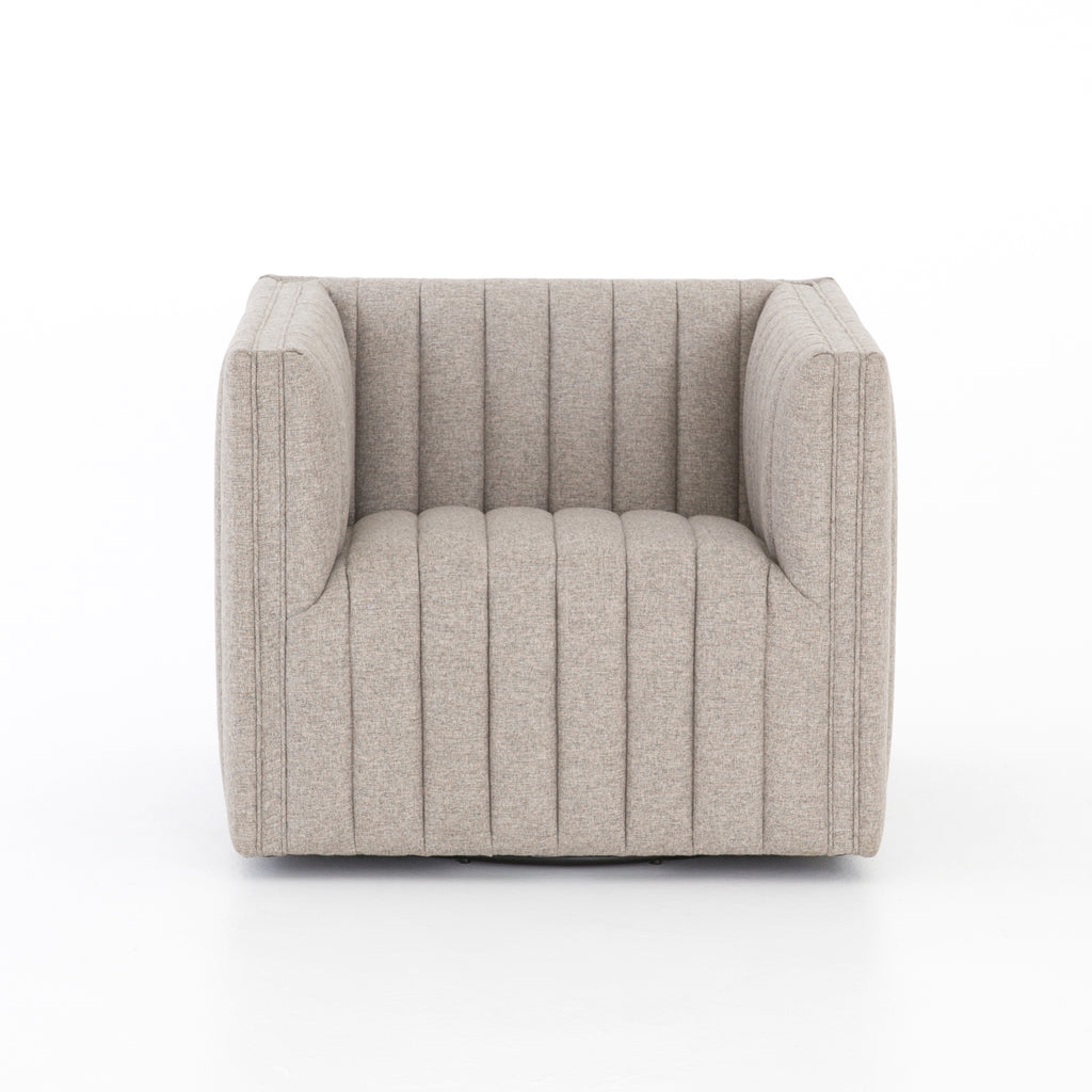 A modern take on classic library chair, luxurious poly-blend navy seating takes on dramatic channeling for trend-forward texture and sumptuous sit. Swivel feature amps up fresh appeal from every angle.