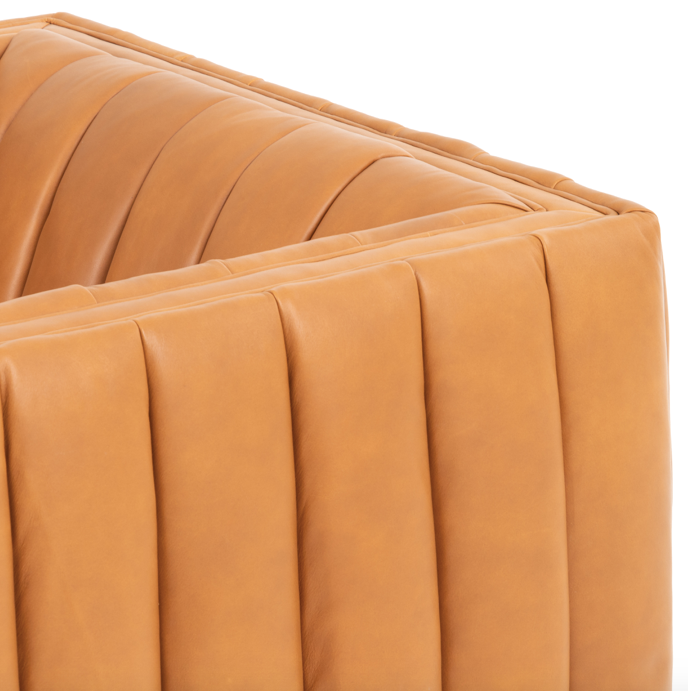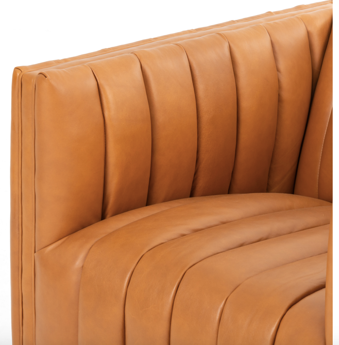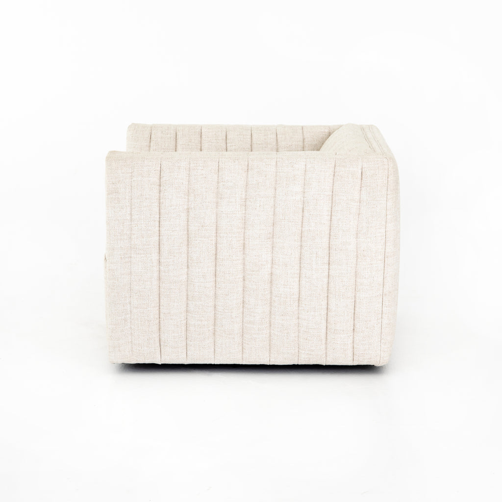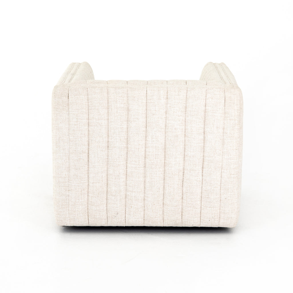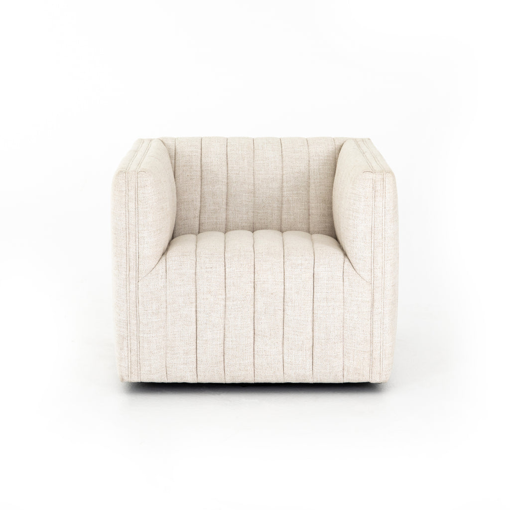 A modern take on classic library chair, luxurious poly-blend navy seating takes on dramatic channeling for trend-forward texture and sumptuous sit. Swivel feature amps up fresh appeal from every angle.