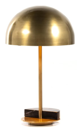 A dome metal shade and semi-circle marble base below lend fun shape to this art deco-inspired lamp.