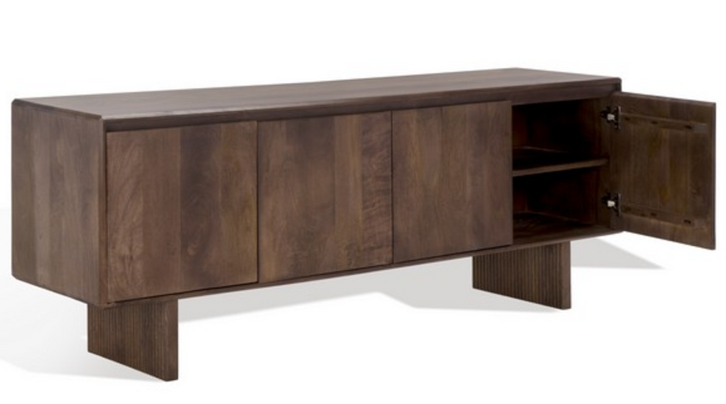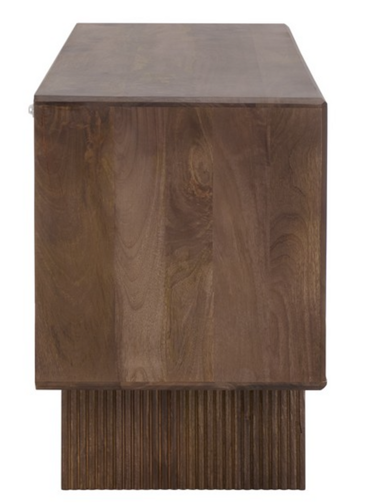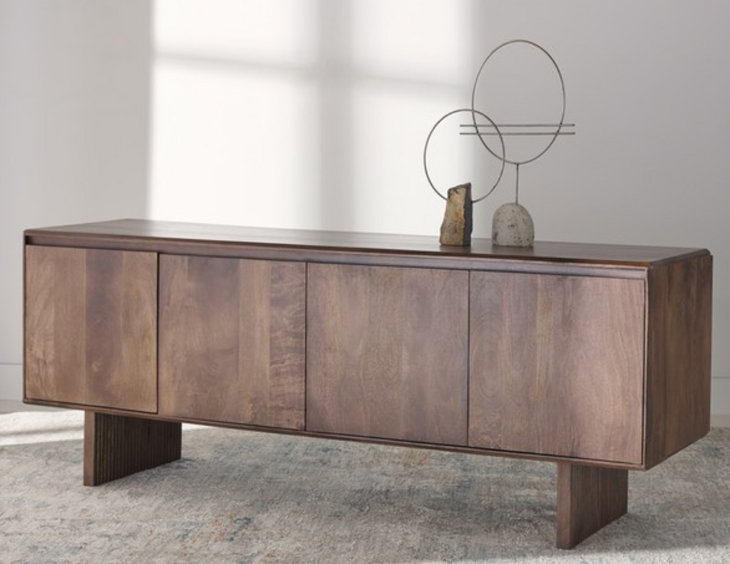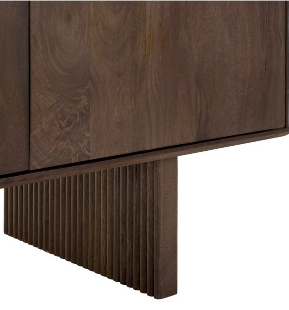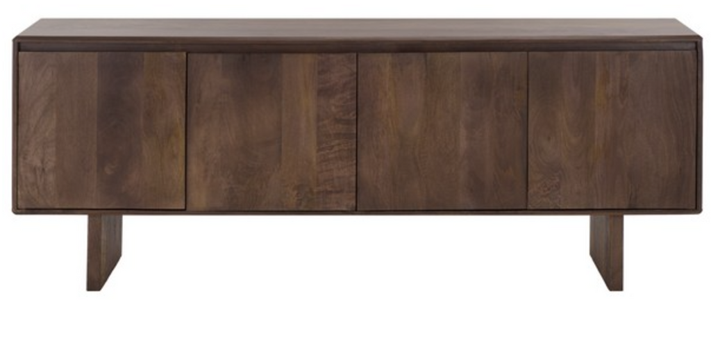 Give a warm and stylish update to your home with our stunningly minimalistic Rinaldi sideboard. Rich in character and refined in execution, our sideboard brings effortless warmth and charm to any corner. Its minimalistic, flat-front doors allow the rich, organic grains of mango wood to stand out. Our modern and inviting sideboard is elevated upon a wooden base to uplift your modern or contemporary home. It features four roomy cabinets to serve as a handy and stylish buffet, media unit, or office cabinet.